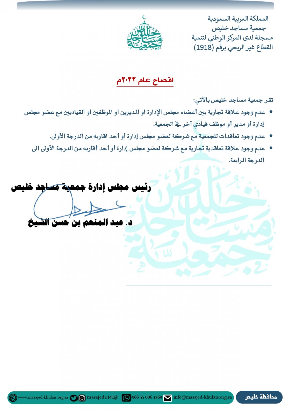 إقرار أعضاء الجمعية على سياسة تعارض المصالح
